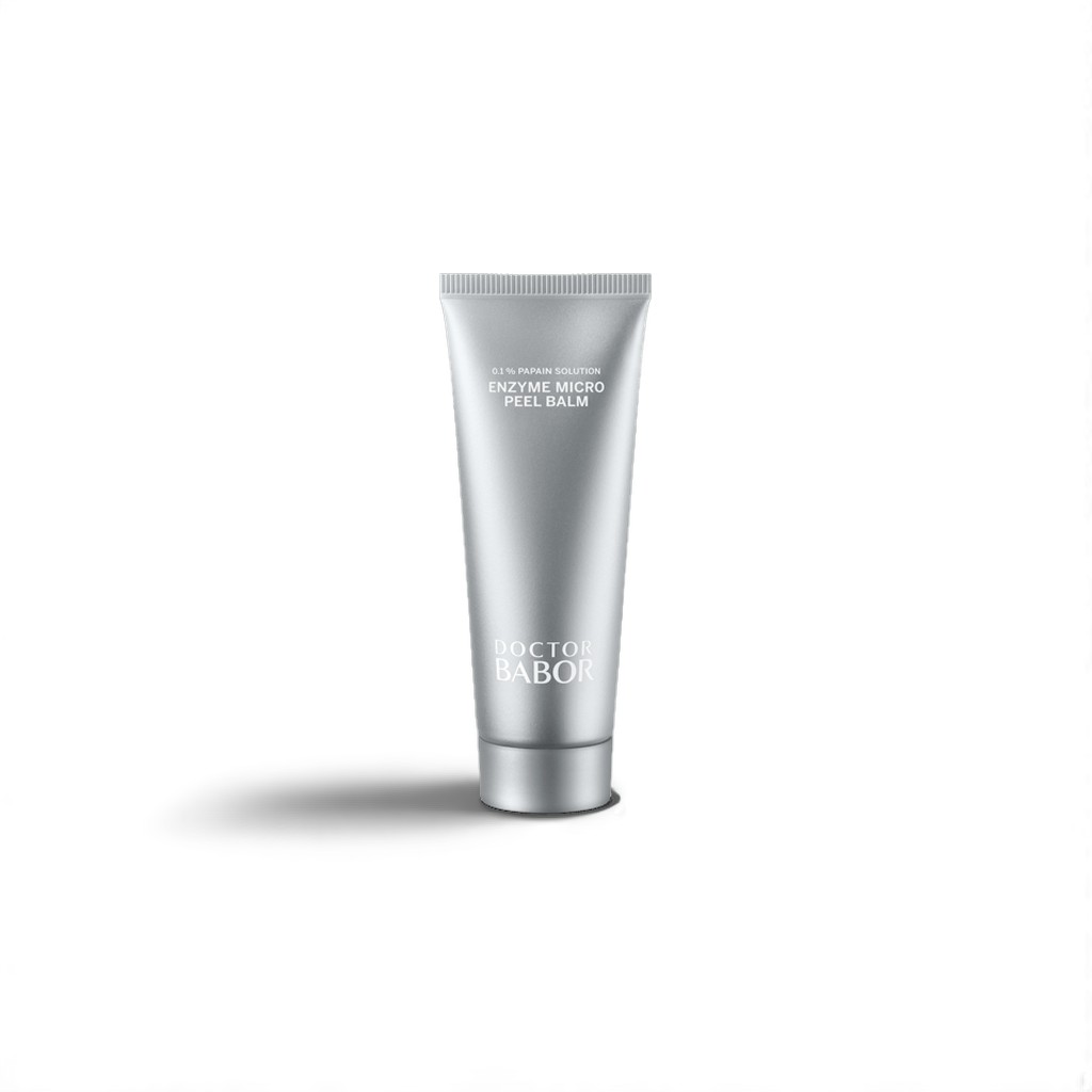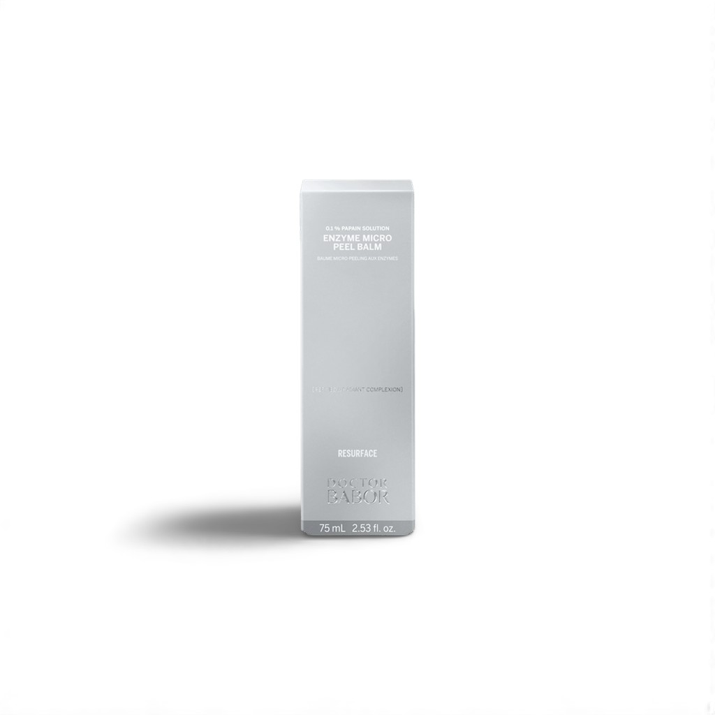 “Doctor Babor Resurface Enzyme Micro Peel Balm gently exfoliates with enzymes to remove dead skin cells, smooth texture, and reveal a more radiant complexion.